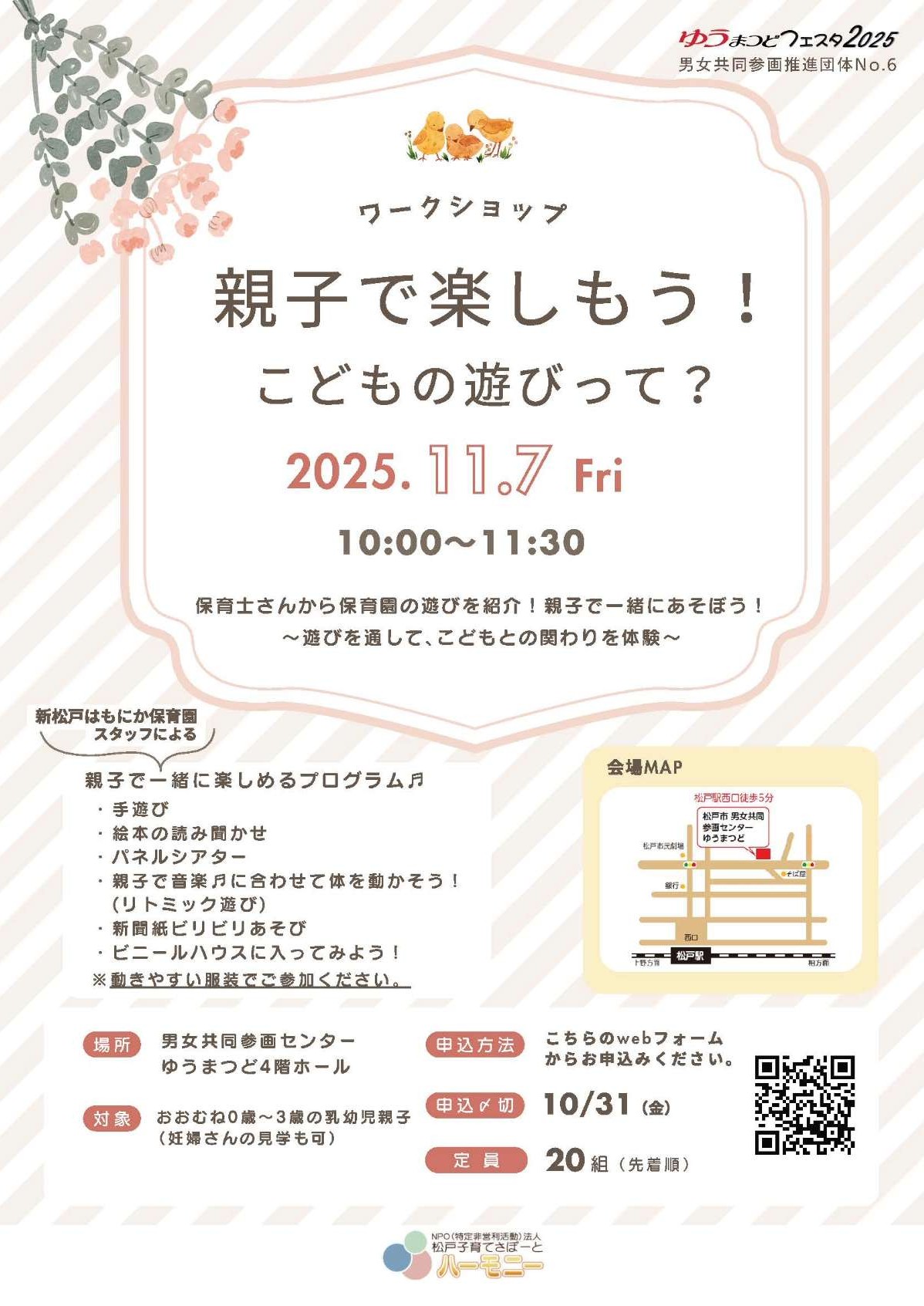 おおむね0~3歳を子育て中の親子 20組(先着)